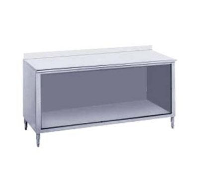 #Work Table, open front cabinet base, 24" wide, 14/304 stainless steel top with 1-1/2" turned up edge at rear, 144" long, s/s bullet feet
