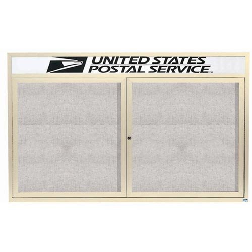 2 Door Outdoor Illuminated Enclosed Bulletin Board with Header & Ivory Powder Coated Aluminum Frame