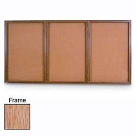 96" X 48" 3-Door Non-Illuminated Corkboard With Light Oak Frame