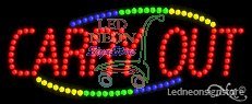 Carry Out LED Sign 11 inch tall x 27 inch wide x 3.5 inch deep outdoor only with outdoor box for use under regular weather made in USA