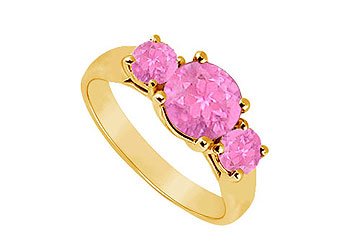 Three Stone Pink Sapphire Ring : 14K Yellow Gold - 1.00 CT TGW Size 11