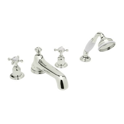 Rohl 4 Hole Low Level Spout Deck Bathtub Filler and Handshower, Cross Handles U.3738X-PN