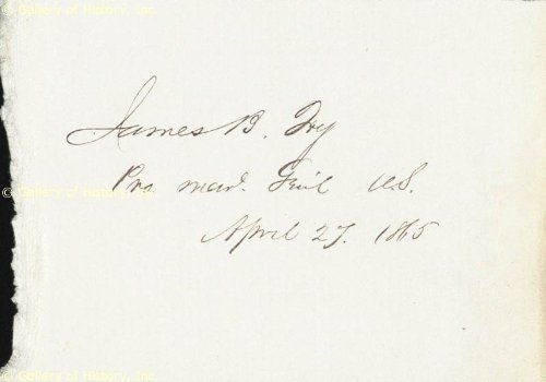| Searching for the best reviews GENERAL JAMES BARNET FRY - SIGNATURE(S) 04/27/1865? Congratulations! Update check prices and customer reviews GENERAL JAMES BARNET FRY - SIGNATURE(S) 04/27/1865 include product reviews and more satisfactory Specs, features and services check it out! #JAMES B. FRY His signature as Provost Marshal General, obtained the day after the Lincoln assassin John Wilkes Booth was killed resisting arrest by federal troops. Signature: "James B. Fry/Pro. Marl. Genl. U.S./April 27, 1865, 4¼x3¼. James Barnet Fry (1827-1894), West Point class of 1847, was Chief of Staff to Union Generals McDowell and Buell in the opening years of the Civil War (1861-1862). In 1863 he was made Provost Marshal General of the Army, keeping the post until it was abolished in 1866. The Provost Marshall of the Army, a post since reinstated, is in charge of the military police and army criminal investigations. Fry was on the platform when President Lincoln delivered the Gettysburg Address (November 19, 1863). Although his military police were involved in the search for Lincoln's assassins after the President's murder on April 13, 1865, Fry was not directly involved in the trial of the accused conspirators. A Special Provost Marshal was appointed for that purpose. From 1866 Fry served Adjutant General, dealing with personnel recruitment and administration, retiring as a Major General. He later wrote several books of history on the Civil War and other topics. Tattered edges. Slightly toned. Otherwise, fine condition. For more information contact HistoryForSale. DOCUMENT 254395 GENERAL JAMES BARNET FRY - SIGNATURE(S) 04/27/1865 . FeaturesA memorable & special gift!A unique centerpiece for the home or office!Only 100% Authentic Autographs & Manuscripts - Certificate of Authenticity Provided.UACC Registered Dealer, #RD110 and member of the Manuscript Society!Fast Worldwide shipping! GENERAL JAMES BARNET FRY - SIGNATURE(S) 04/27/1865?Some advice • If you are interested in buying GENERAL JAMES BARNET FRY - SIGNATURE(S) 04/27/1865, you might try to find a complete description, detailed product information. • If you read the reviews, I will give you a more complete understanding of the pros and cons of the product you need. • You can try to find the item that is comparable, it helps sometimes to choose to purchase. • Find a discussion, you might try to browse. • Please see the details of the information that is delivered with each product. • You may be trying to find the features of the product. • As long as the general, I know, ideas and shop outlets, shipping, gift, city information, sale, purchase coupons, new, review & holiday Customers who purchased the product or other GENERAL JAMES BARNET FRY - SIGNATURE(S) 04/27/1865 On the Internet, cheap and special offers deals, bargain, on GENERAL JAMES BARNET FRY - SIGNATURE(S) 04/27/1865, information deals, discount coupons, deals Top & hot, great offers and last minute deals and offers on the best day you are interested in minimum price Best Buy products, including ...Additional information |