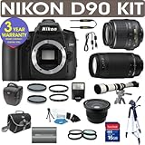 REFURBISHED Nikon D90 Digital Camera + Nikon 18-55mm VR Lens + Nikon 70-300mm Lens + .40x Wide Angle Fisheye Lens + 650-1300mm Zoom Lens + 16GB Memory + 3 Year Celltime Warranty