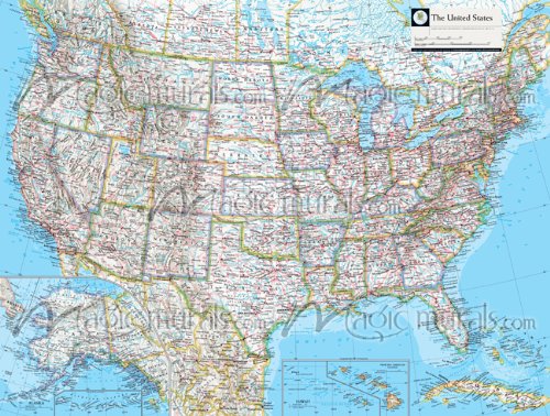 Map of United States Wall MuralEnd User License Agreement - I understand that in purchasing any mural by Magic Murals, I obtain no copyright rights or other intellectual property rights of any form in the content and may not duplicate or re-publish the photograph or artwork in the mural for any reason, including, but not limited to, commercial purposes. Commercial applications such as advertising or POP (point of purchase) displays are strictly prohibited. I further understand that in selecting any content and in adding text or other materials to such content, I in no way obtain copyright rights or other intellectual property rights in the content as joint copyright owner or otherwise.