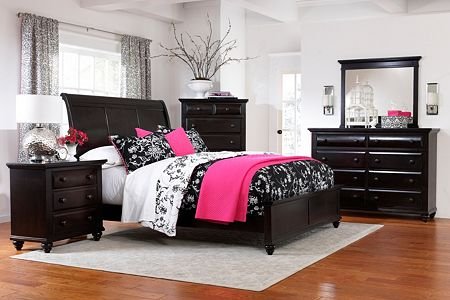 Broyhill Farnsworth Sleigh Bedroom Set in Inky Black Stain 4856SBR .