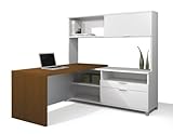Bestar 120852-17 Pro-Linea L-shaped with Hutch Kit in White & Cognac Cherry
