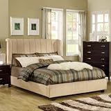 | ✚✚✚ Milano Wingback Bed Size: Queen IDF-7025Q Size: Queen Features: -Material: Solid wood and velvet fabric.-Tall, sheltered headboard and durable fabric.-Low footboard.-Slat system with support legs make the use of box spring optional. Includes: -Includes slat kit. Construction: -Comes with frame-and-panel construction for structural integrity. Color/Finish: -Beige finish. Collection: -Milano collection.