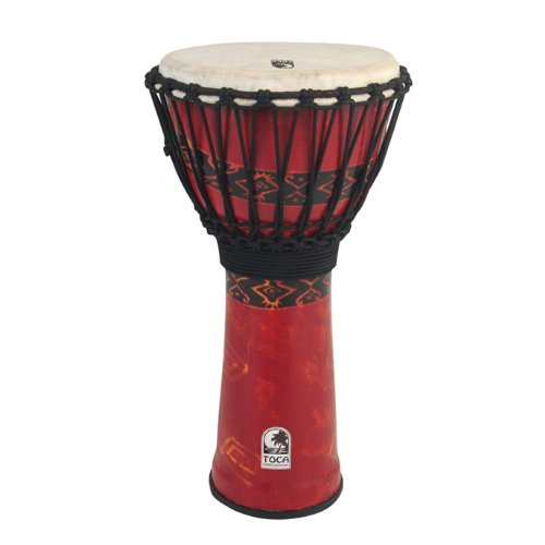 TOCA Freestyle Rope Tuned 12" Djembe, RP (Package Of 3)Voted Best of Show at NAMM 2007, Toca Djembes are a true show-stopper. A striking, professional quality product, with a wide range of tonal abilities, at a reasonable price - they are the complete package. Producing great bass tones and highs, they have a lightweight and durable seamless synthetic shell with a protective rubber bottom. They are 24" tall and have a 12" goatskin head held with low stretch Alpine rope with braided cores produce rih bass tones with sharp, piercing rim tones that enable stable tuning. (Package Of 3)