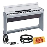 Korg LP350 Digital Piano Bundle with Two 10-Foot MIDI Cables, Headphones, and Polishing Cloth - White